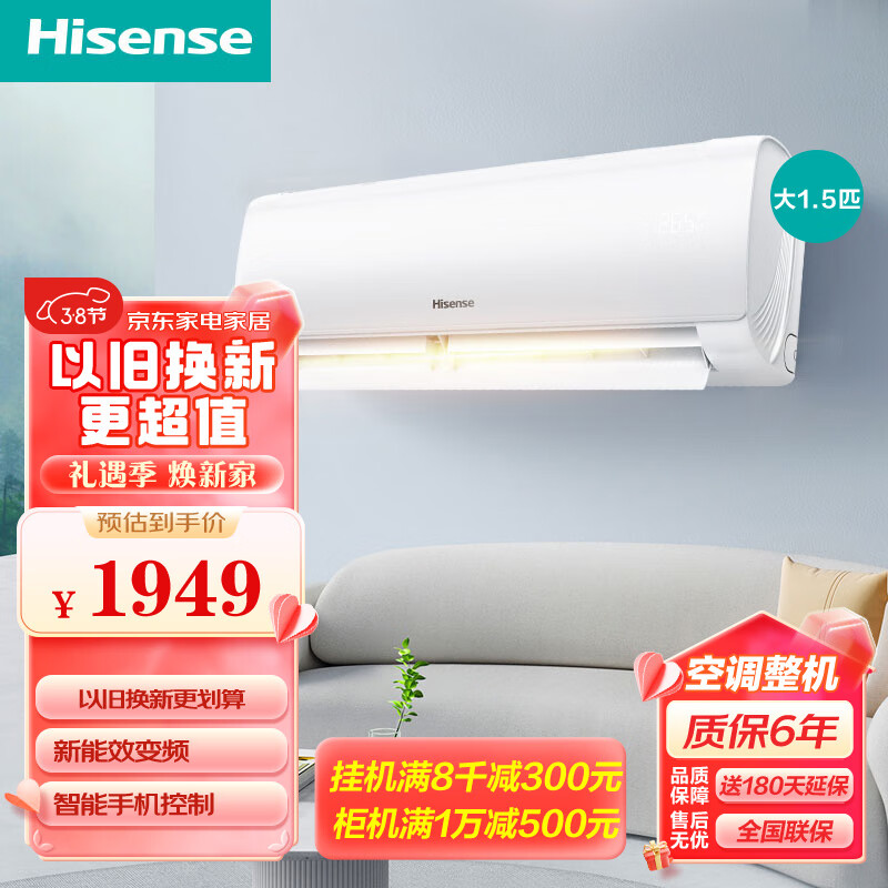 海信(Hisense)1.5匹空调挂机 变频速冷暖大风量APP智控低噪舒适高温自清洁卧室壁挂式KFR-35GW/E290-X3价格:1999.00元!