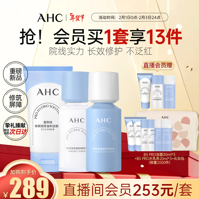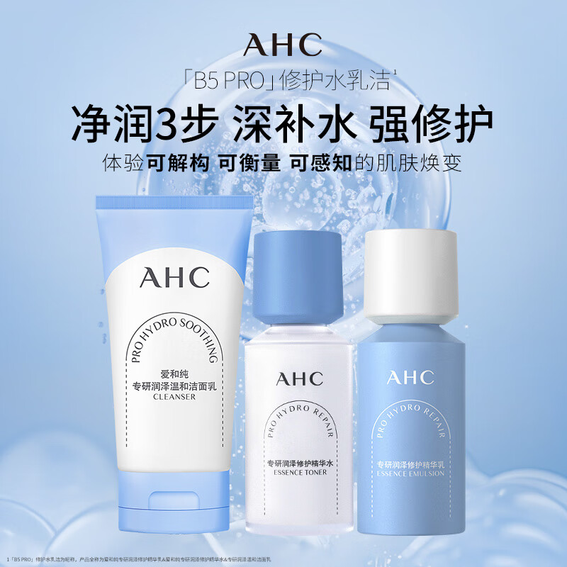 AHC升级版B5润泽修护水乳洁面护肤套装(水+乳+洗面奶)生日新年礼物价格:289.00元!