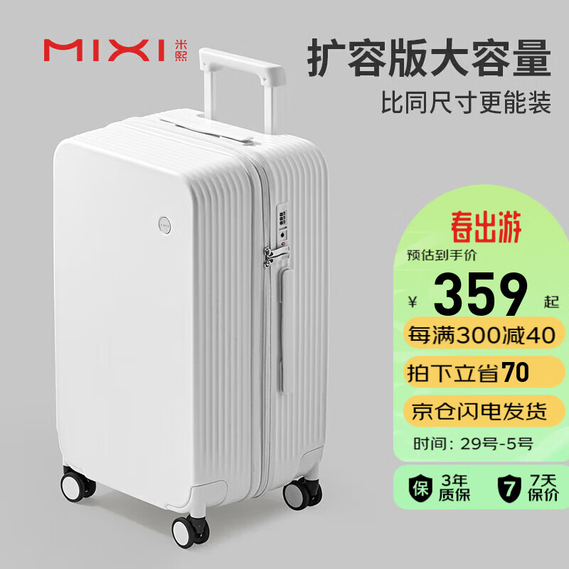 米熙高颜值拉杆箱子行李箱大容量托运箱男旅行箱包女学生22英寸烟白83价格:429.00元!