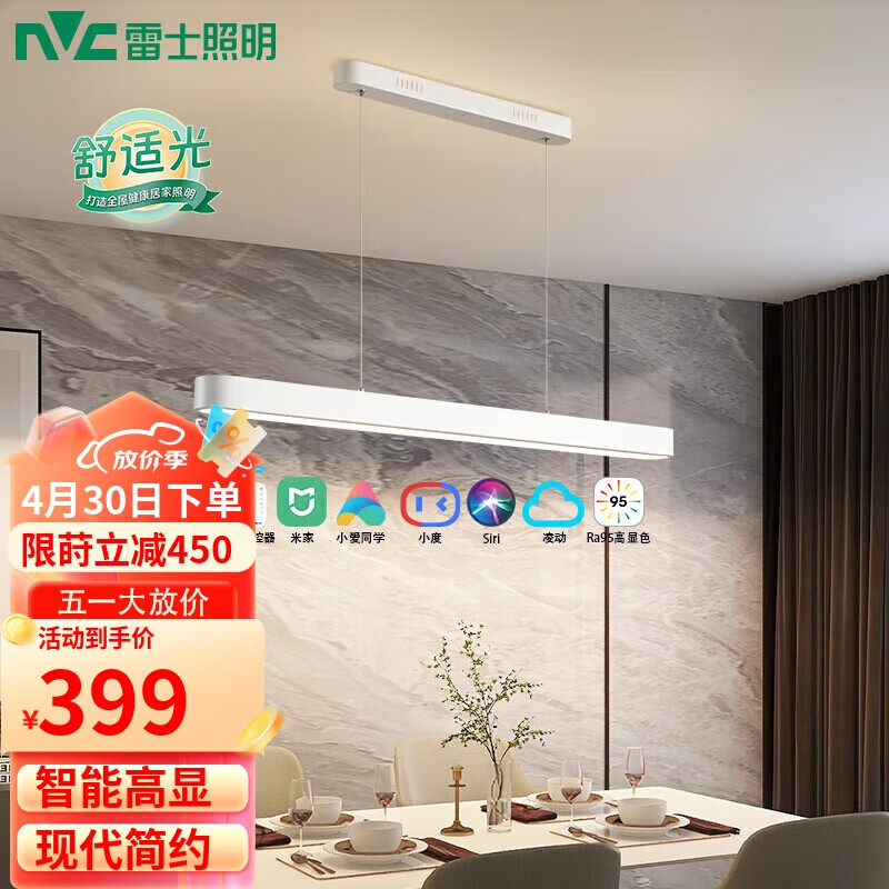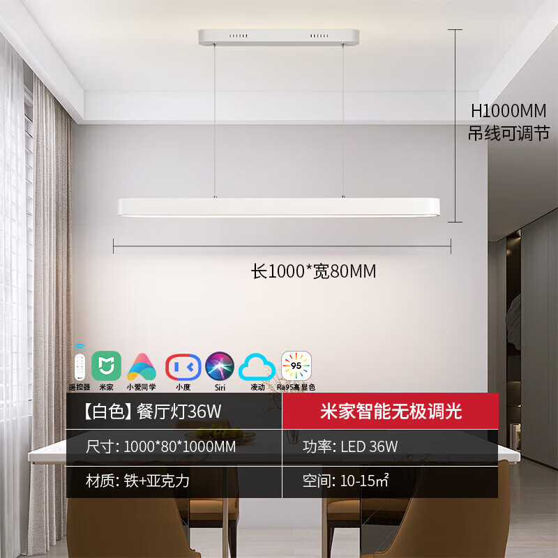 雷士(NVC)一字灯餐厅灯智能高显指吸顶吊灯简约长条灯具雅白WHDD36F/G-01价格:849.00元!
