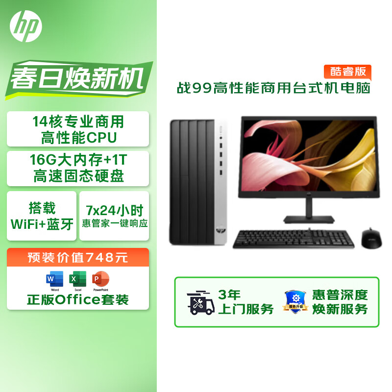 惠普(HP)战99 台式电脑主机(酷睿13代i5-13500 16G 1TSSD)21.45英寸显示器 WiFi 蓝牙 14核高性能CPU价格:4099.00元!