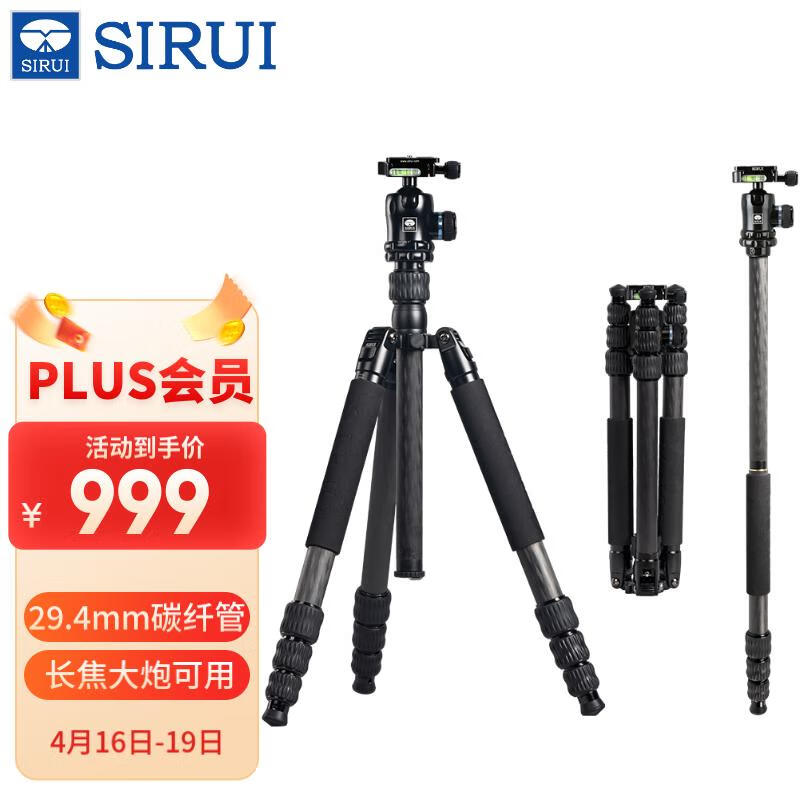 思锐(SIRUI)三脚架 E-2204A+K-21X 碳纤维 佳能微单尼康单反相机专业三角架 可反折收纳可变独脚 摄影摄像价格:1119.00元!