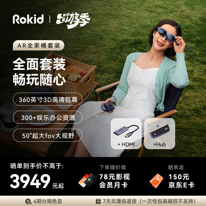 ROKID Max若琪智能AR眼镜全家桶3D游戏电影360英寸巨幕DP直连ROG掌机iPhone15系列和Mate60非VR一体机价格:3599.00元!