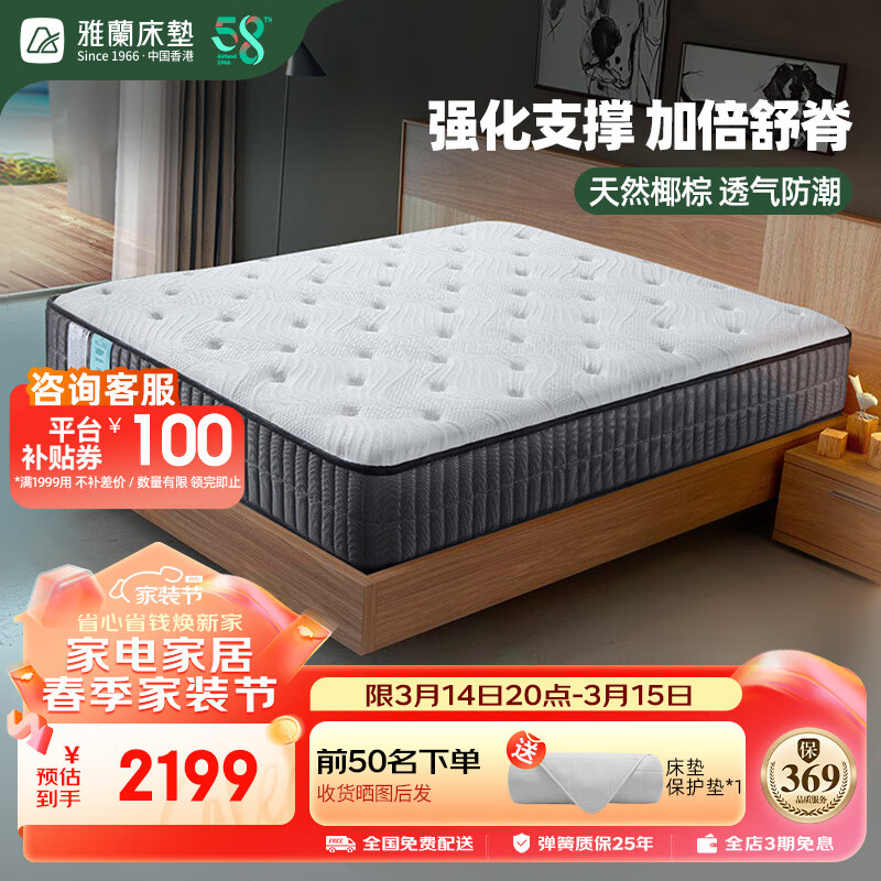 雅兰(AIRLAND)加硬承托进口椰棕双面可用卧室床垫 有度加硬版 1.8*2米价格:2999.00元!