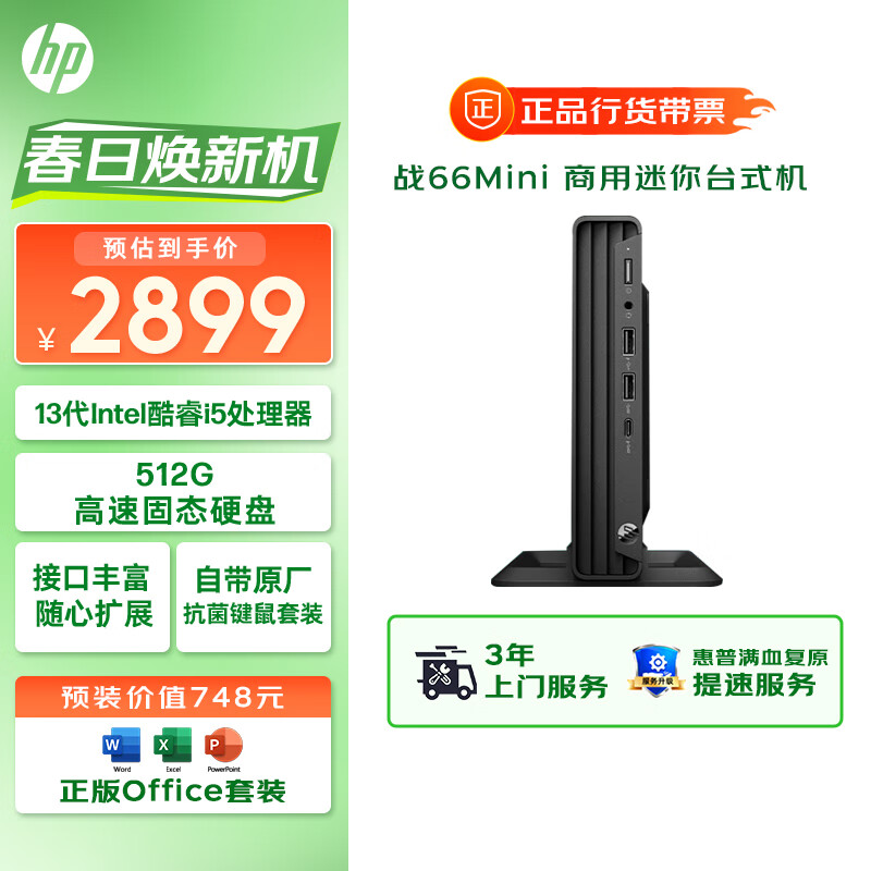 惠普(HP)战66Mini 迷你台式电脑主机 (酷睿13代i3-1315U 8G 512G) 内置音响 WiFi6价格:2899.00元!