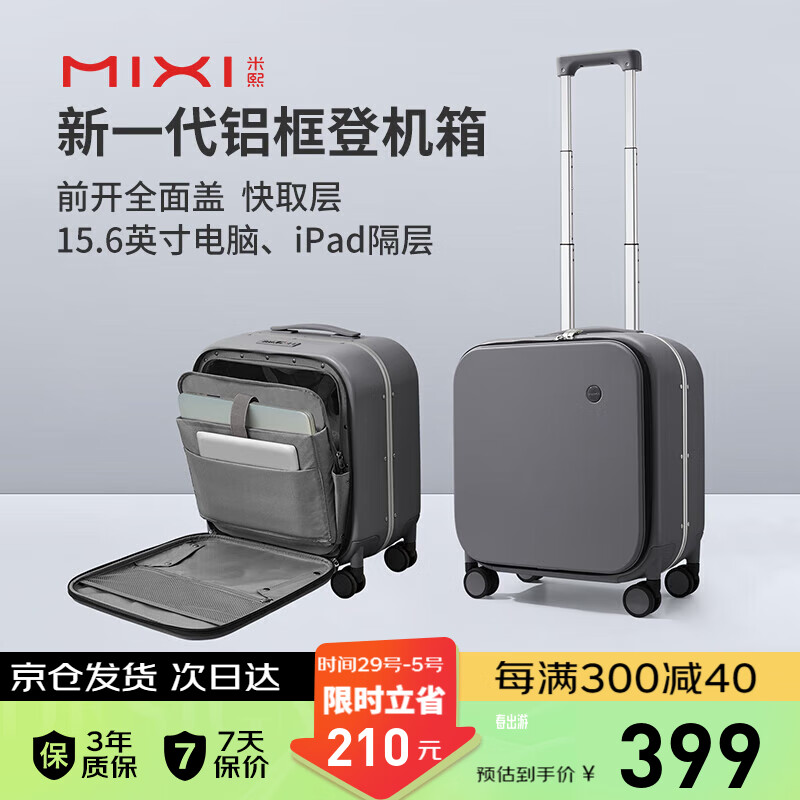 米熙前开盖拉杆箱子行李箱男登机箱铝框箱密码箱旅行箱18英寸矿岩灰60价格:609.00元!