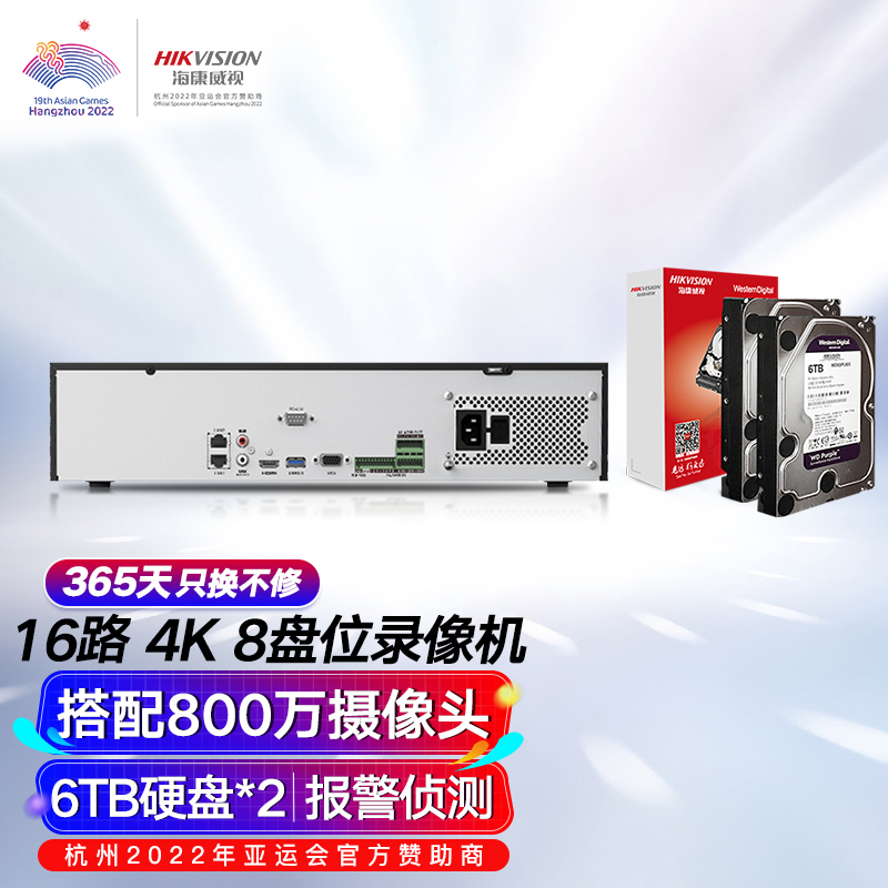 海康威视网络硬盘录像机监控16路8盘位兼容8TNVR满配16个摄像头带6TB硬盘DS-8816N-R8价格:5113.00元!