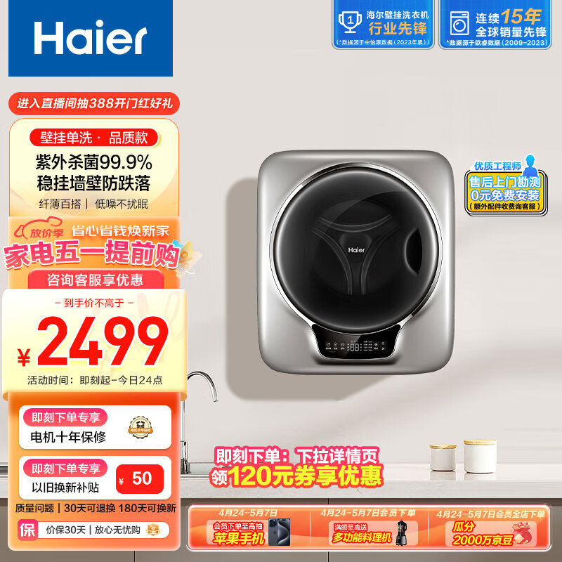 海尔(Haier)壁挂洗衣机 滚筒洗衣机全自动 迷你洗衣机婴儿洗衣机儿童洗衣机 3公斤 紫外线除菌 XQGM-BX798SU1价格:2599.00元!