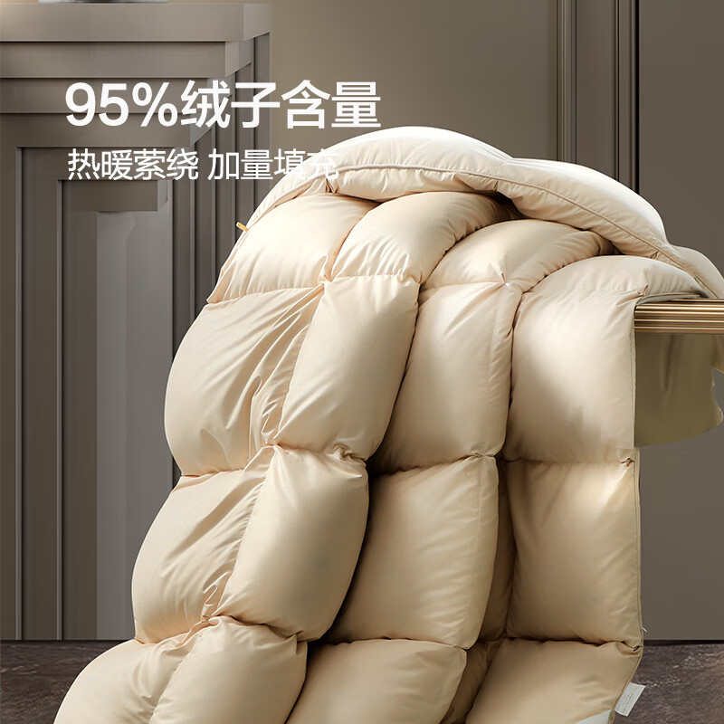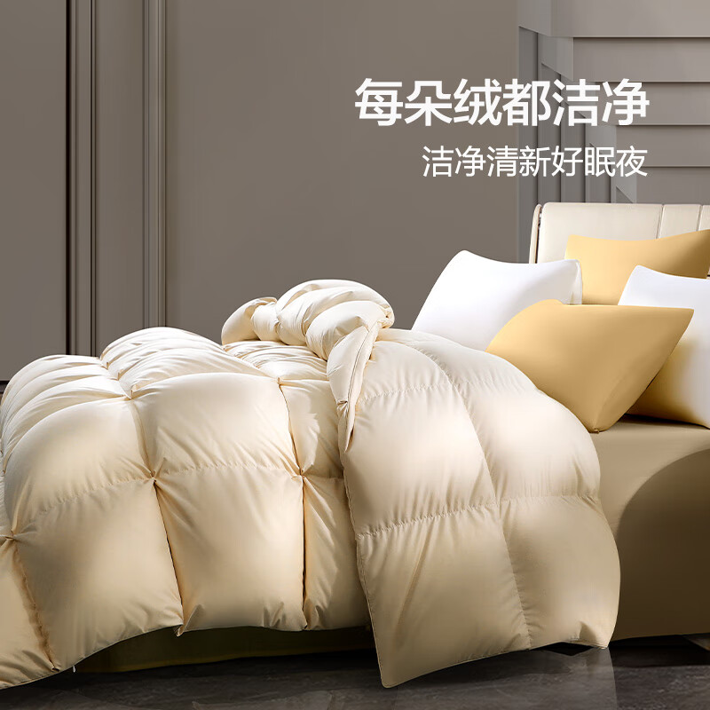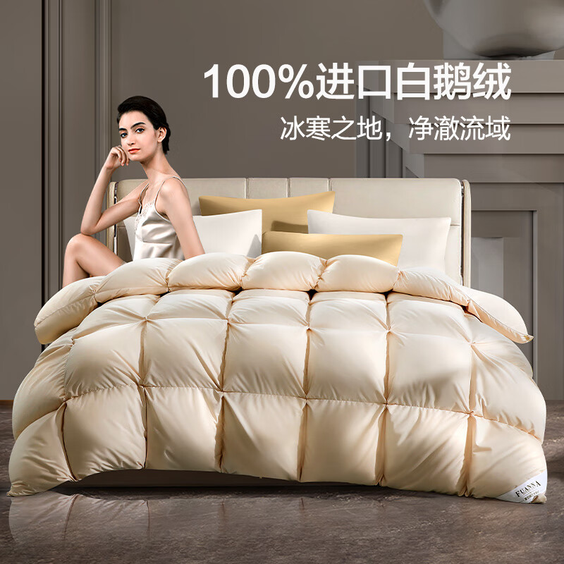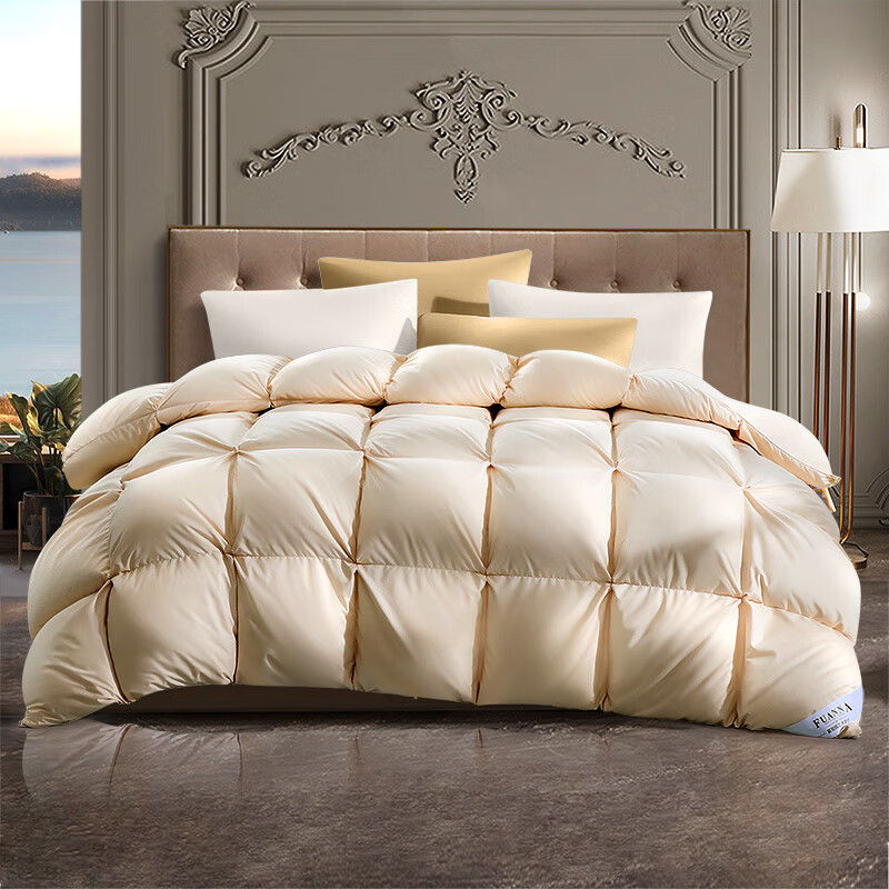 富安娜 贝加尔95%白鹅绒羽绒被乌克兰加厚被1100g填充 203*229cm金色价格:5799.00元!