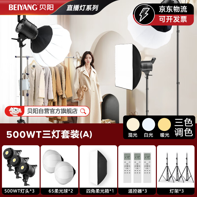 贝阳(beiyang)500WT直播补光灯LED摄影灯专业直播间灯光设备套装拍摄视频打光灯摄像拍照柔光球形美颜常亮灯价格:1124.00元!