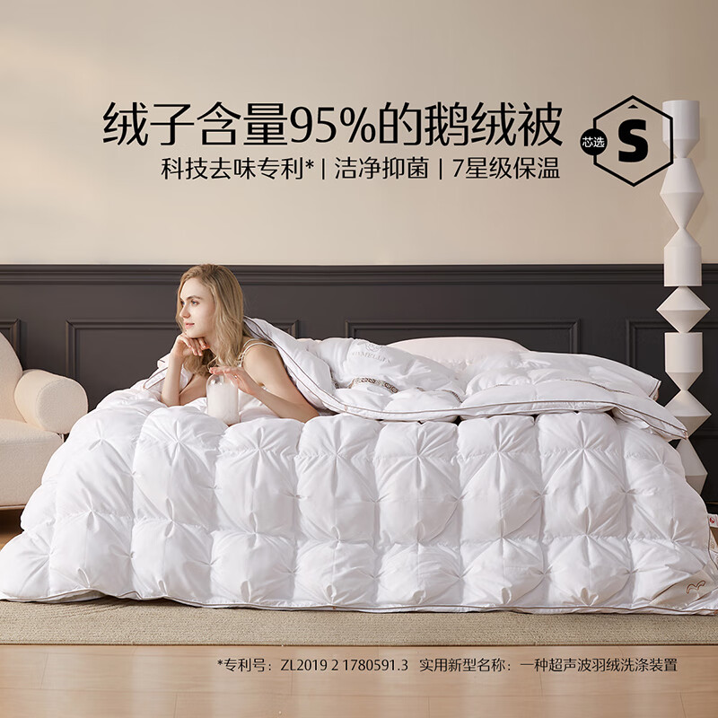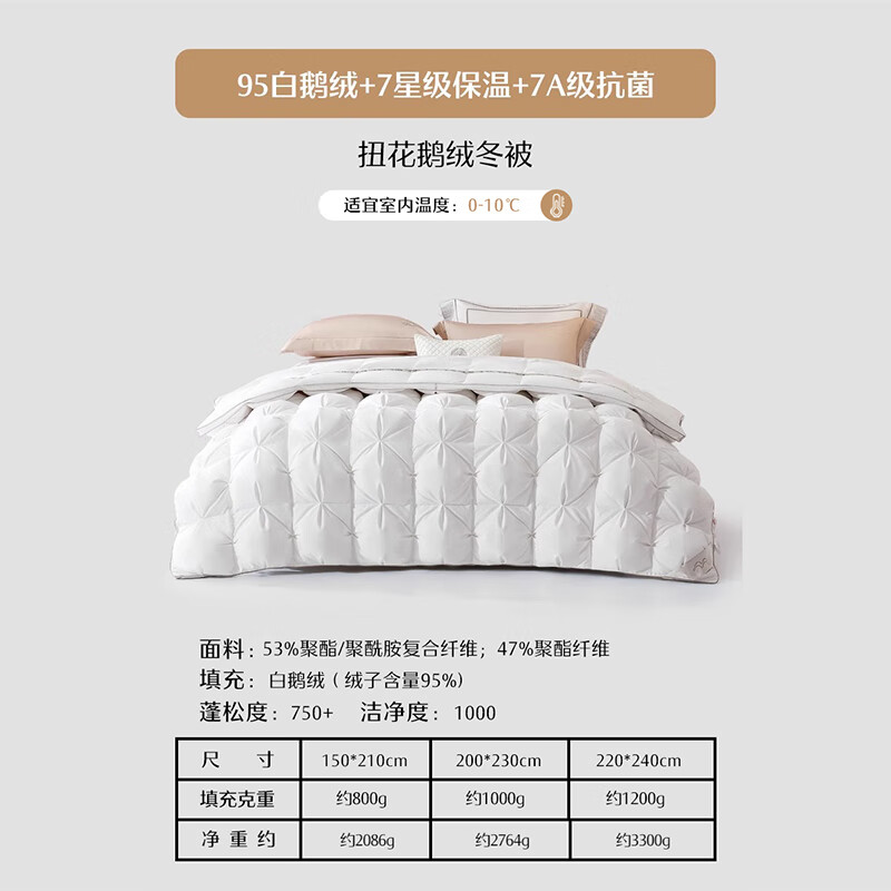 水星家纺白绒吹雪95%白鹅绒羽绒被冬被(800g填充)150*210cm价格:2999.00元!