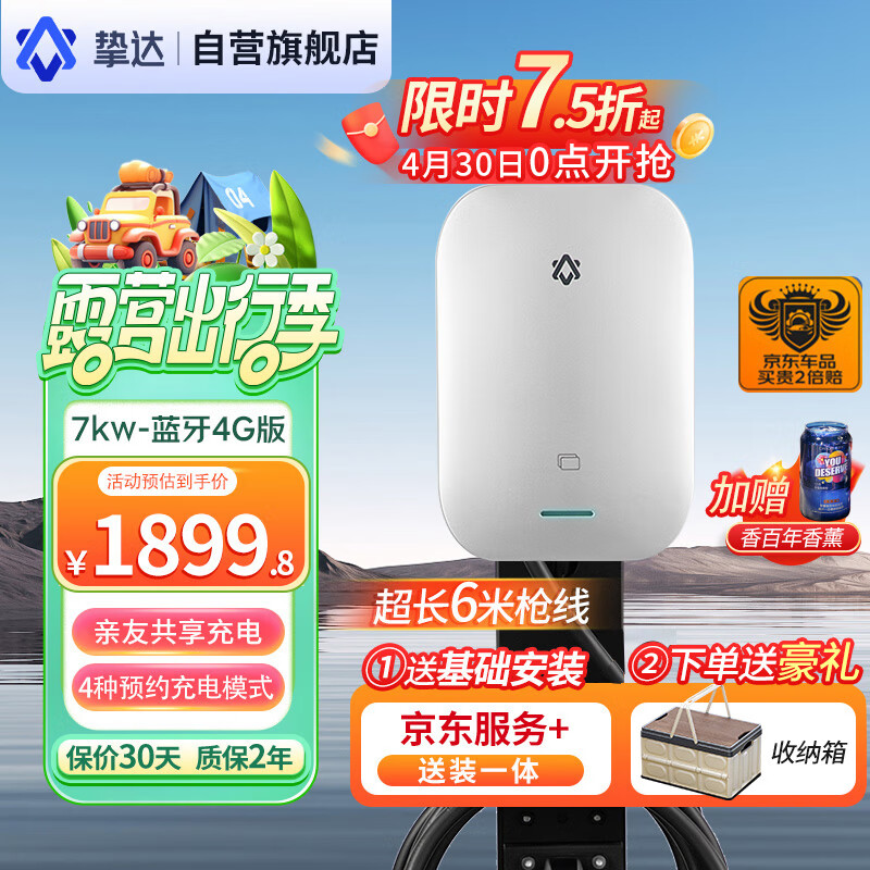 挚达充电桩新能源7kw220Vmodel3y汽车充电器适配特斯拉比亚迪极氪小鹏埃安(送装一体)送0米基础安装价格:2533.00元!