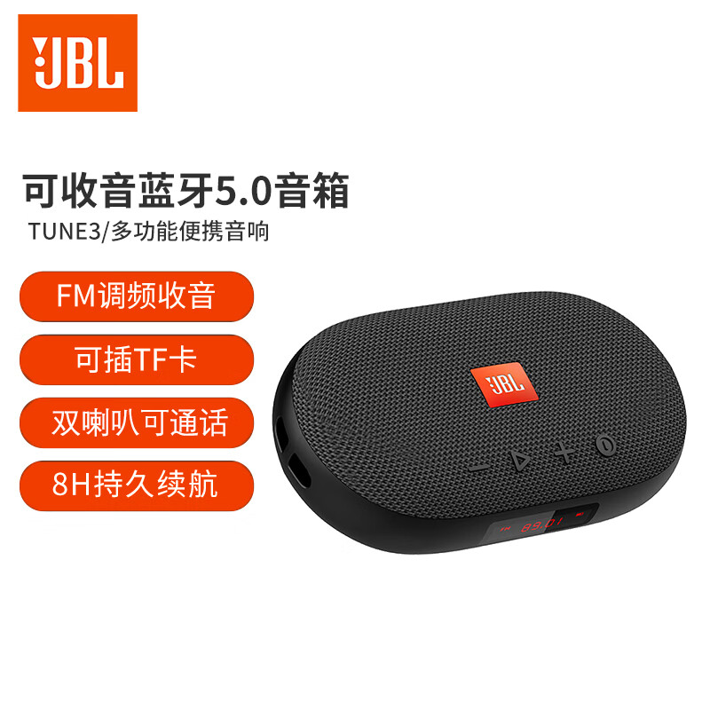 JBL TUNE3 多功能插卡蓝牙音箱 便携式户外音响 FM收音机TF卡 学生学习老人娱乐SD18升级款 黑色价格:439.00元!