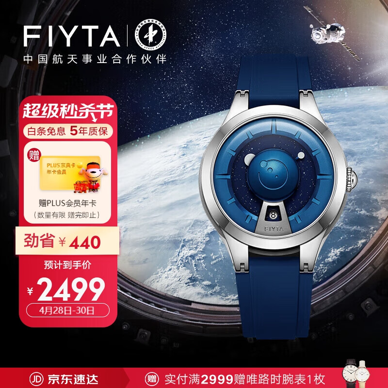 飞亚达(FIYTA) 【三体联名】主题蓝盘硅胶带机械男士腕表 送男友节日礼盒价格:2859.00元!