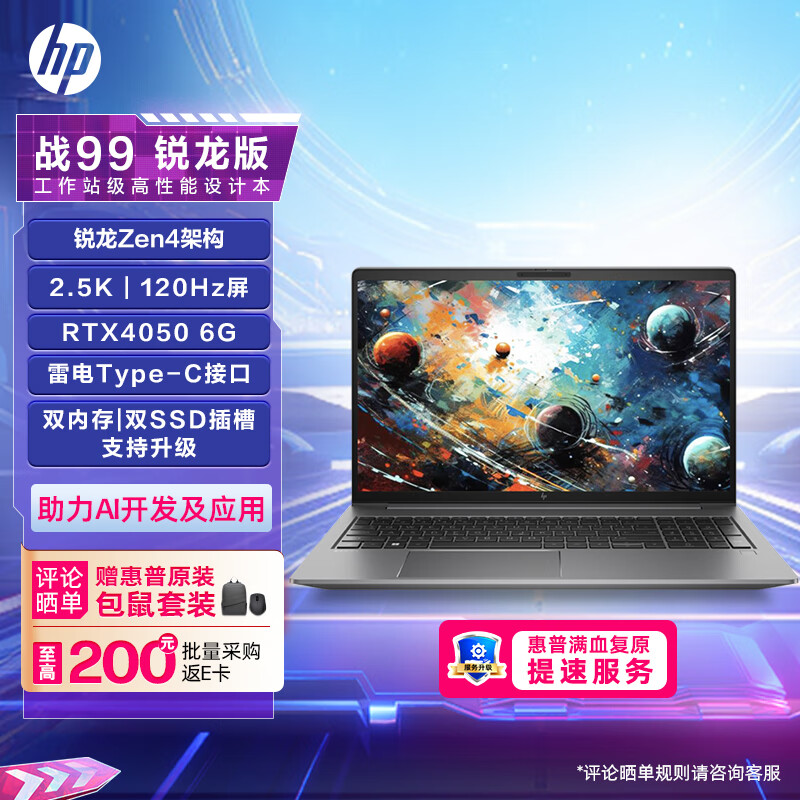 惠普(HP)战99 4nm锐龙15.6英寸高性能笔记本AI电脑设计师本工作站R7-7840HS RTX4050 16G1TB2.5K120Hz价格:6299.00元!