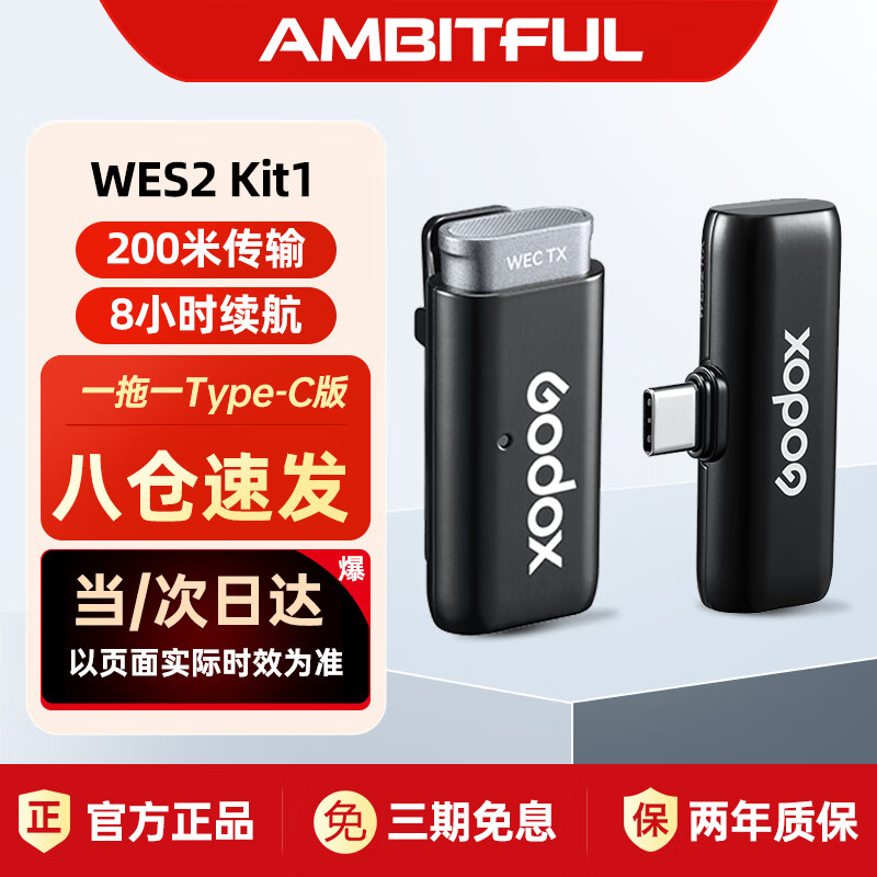 神牛(Godox)WES2一拖一无线领夹式麦克风安卓TYPE-C口小蜜蜂收音器户外降噪采访录音抖音主播直播设备话筒价格:299.00元!