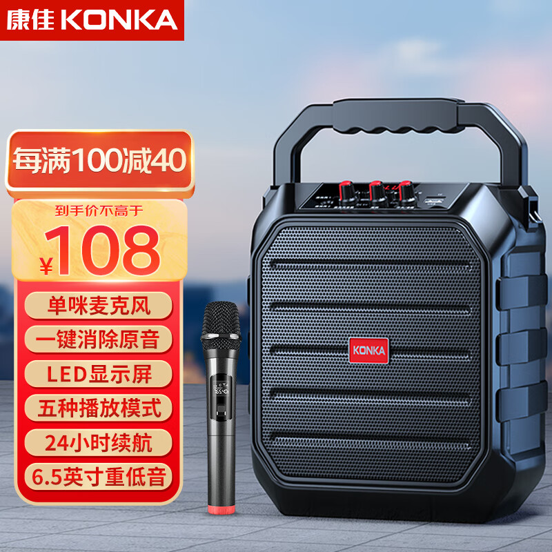 康佳(KONKA)无线蓝牙音箱户外大音量广场舞音响小型家用手提便携式地摊摆摊喇叭收钱码语音播报器 单话筒价格:148.00元!