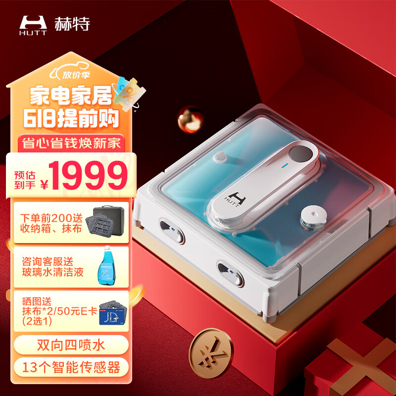 赫特擦窗机器人W9全自动擦窗户智能变频喷水干湿两用擦窗户机器人电动擦玻璃神器价格:2599.00元!