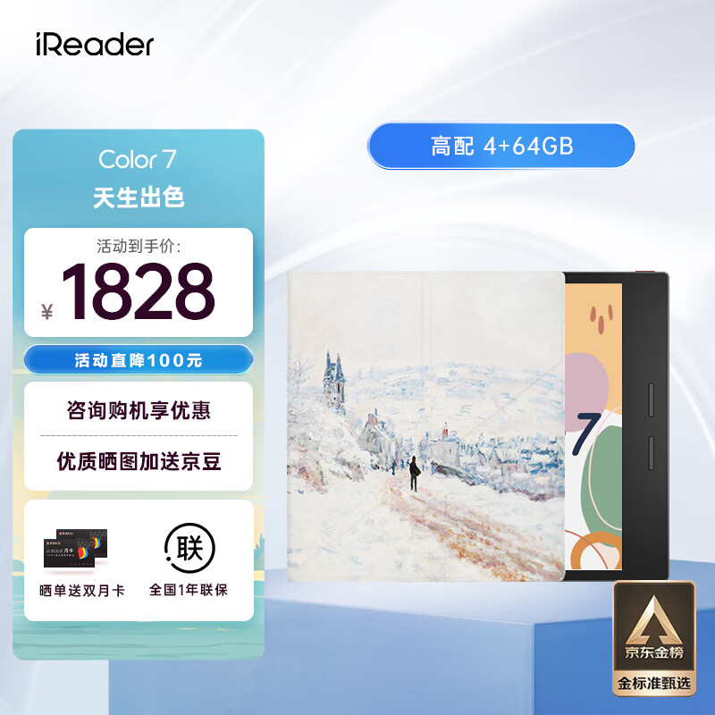 掌阅iReader Color7 彩色墨水屏 7英寸电纸书阅读器 高刷智能电子书平板 轻量便携 维特尼·套装 4+64GB价格:1828.00元!