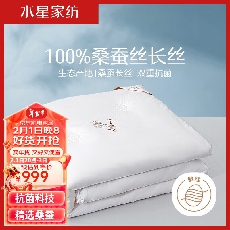 水星家纺抗菌100%桑蚕丝四季被约5.6斤220*240cm白价格:2199.00元!
