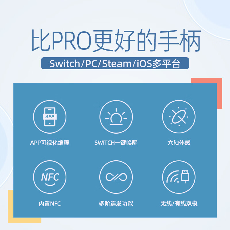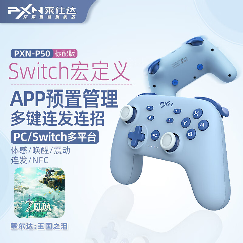 莱仕达 P50可视化编程Switch无线蓝牙游戏手柄NS唤醒NS主机NFC体感电脑steam王国之泪艾尔登法环 冰川蓝价格:176.00元!