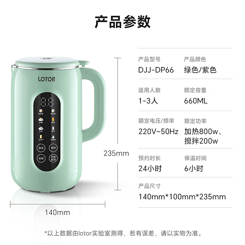 LOTOR小浣熊迷你豆浆机家用免洗破壁机预约定时小型全自动免洗免滤搅拌机DJJ-DP66紫色价格:189.00元!