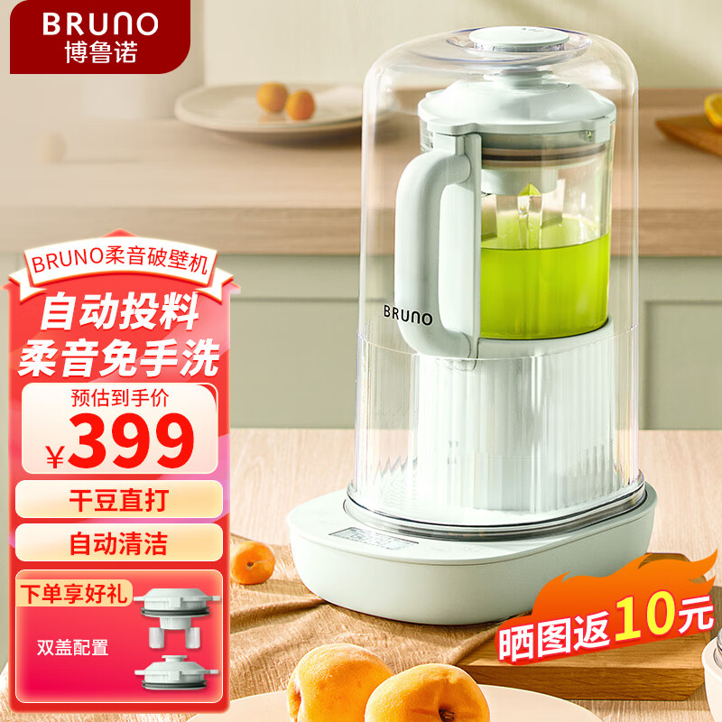 BRUNO柔音破壁机1.2L家用豆浆机小型容量加热免洗全自动榨汁搅拌机静音辅食养生壶早餐料理机薄荷绿价格:399.00元!