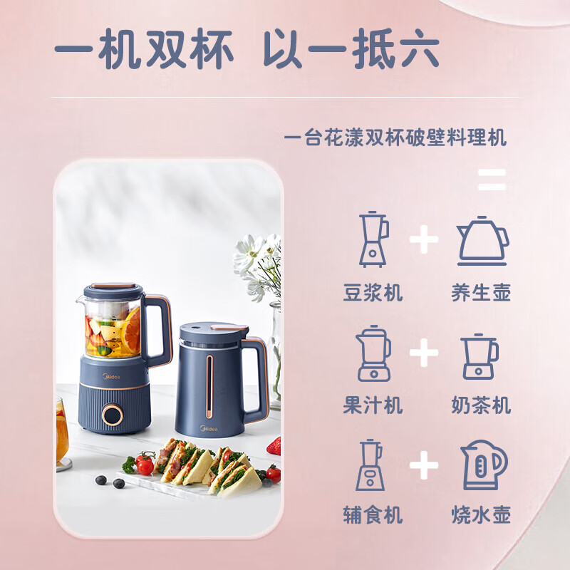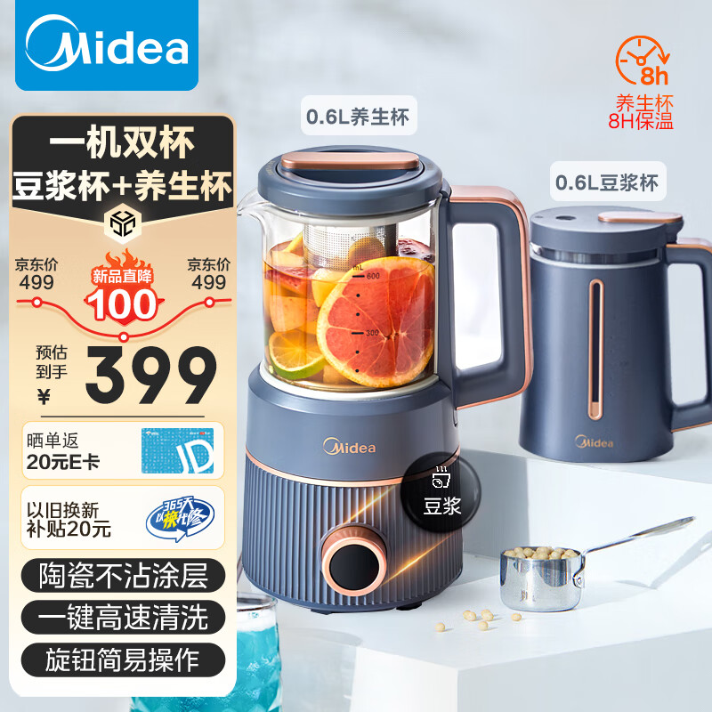 美的破壁机 小型豆浆机1-2人食养生壶 烧水壶家用辅食机多功能榨汁机智能自动清洗预约功能DJ06B-DJ80价格:399.00元!