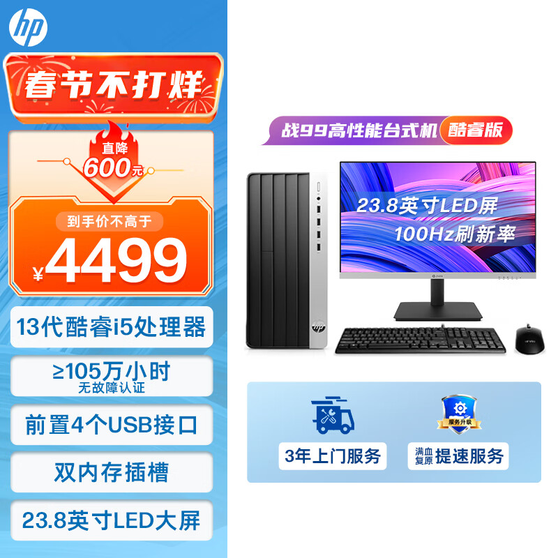 惠普(HP)战99 台式电脑主机(酷睿13代i5-13500 32G 1TBSSD)23.8英寸大屏显示器 WiFi 蓝牙 14核高性能CPU价格:4499.00元!