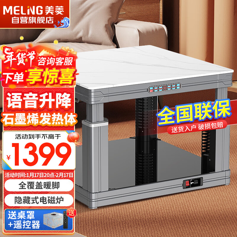 美菱0.9*0.9米电暖桌石墨烯发热体正方形取暖桌多功能升降烤火茶几电暖炉餐桌两用电烤桌MDN-F6GD6 E价格:1599.00元!