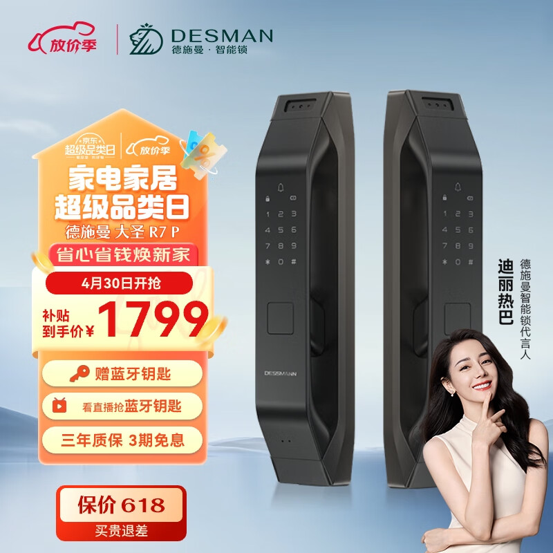 德施曼(DESMAN)全自动3D人脸识别智能锁指纹锁密码锁防盗门锁智能门锁 大圣 R7P价格:1899.00元!