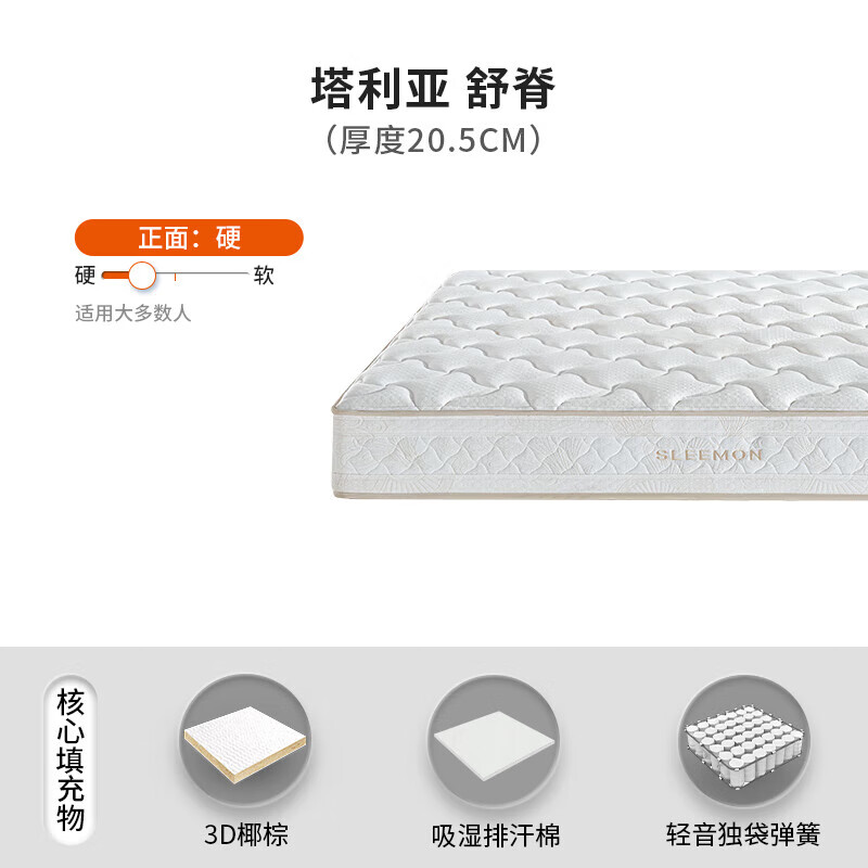 喜临门床垫 3D椰棕床垫 独袋弹簧偏硬床垫 塔利亚舒脊版1.5x2米价格:1699.00元!