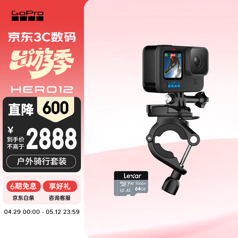 GoPro HERO12 Black运动相机 户外潜水滑雪防抖相机 防水vlog照相机 户外骑行套装【手把固定座+64G卡】价格:2888.00元!