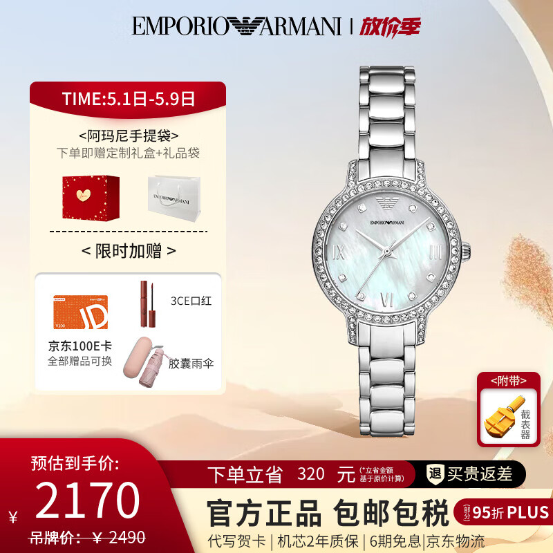 安普里奥·阿玛尼(Emporio Armani)手表女白月光钢带镶钻石英女士腕表生日礼物送女友AR11484价格:2370.00元!