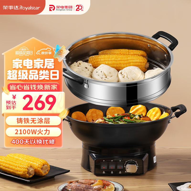 荣事达 电蒸锅电炒锅多功能电热锅山东锅多用电火锅电煮锅单层大容量电锅DRG-T34X价格:259.00元!