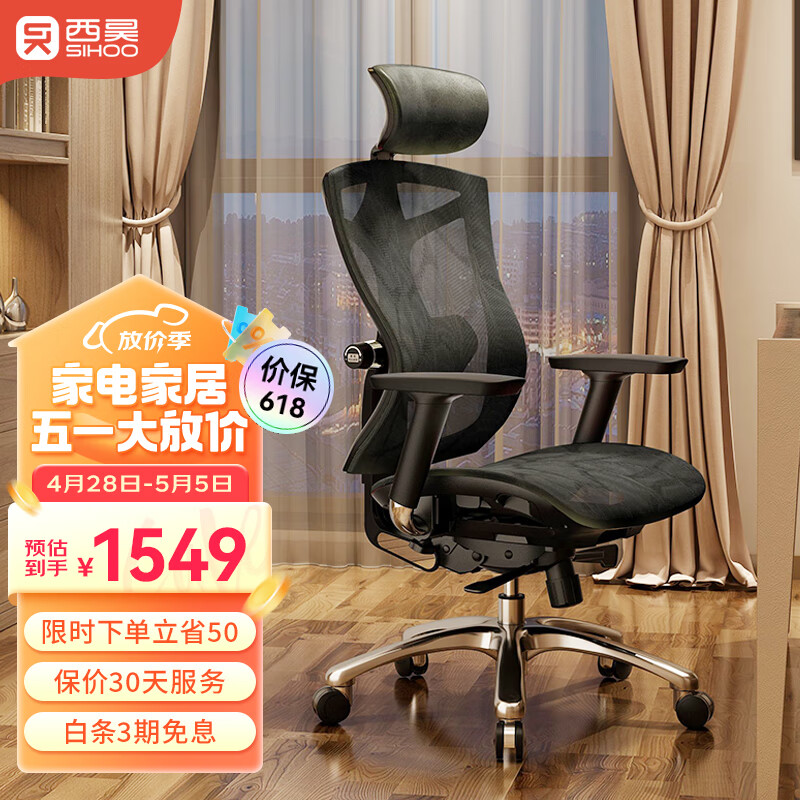西昊V1大体型人体工学椅电脑椅子办公椅可躺老板椅子人工力学座椅久坐价格:1699.00元!