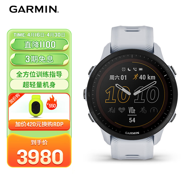 佳明(GARMIN)Forerunner955太阳能白色 多功能户外运动手表跑步血氧音乐支付价格:3980.00元!