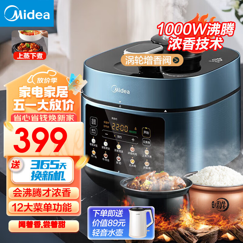 美的(Midea) 电锅 电压锅沸腾浓香家用加厚双胆大火力高压锅多功能预约定时双胆电饭煲 高性价比款 4.8L C551N(4-10人)价格:499.00元!