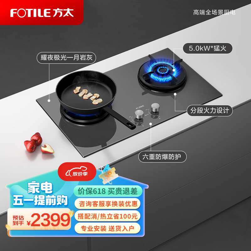 方太燃气灶(天然气)家用嵌入式燃气灶 换装灶具 5.0kW*大火力01-THF1-G 月岩灰价格:2399.00元!