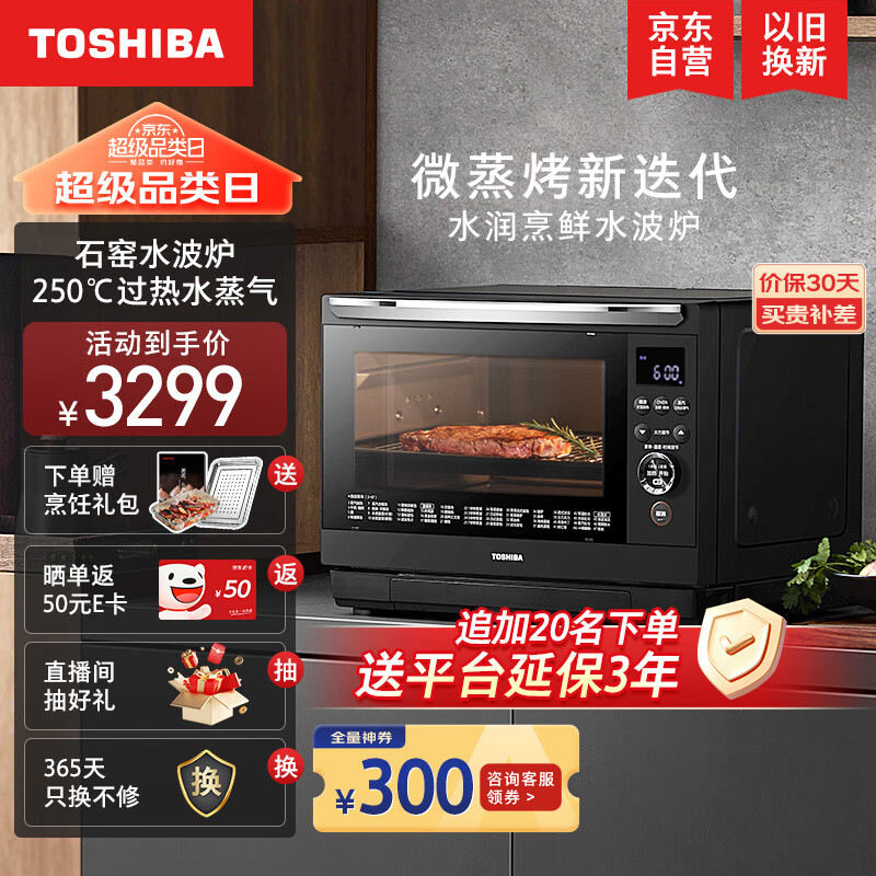 东芝(TOSHIBA)穹顶水波炉 家用台式微蒸烤一体机 平板变频微波炉蒸烤箱三合一 一级能效石窑烤26升 ER-XD90 黑色 26L价格:3699.00元!