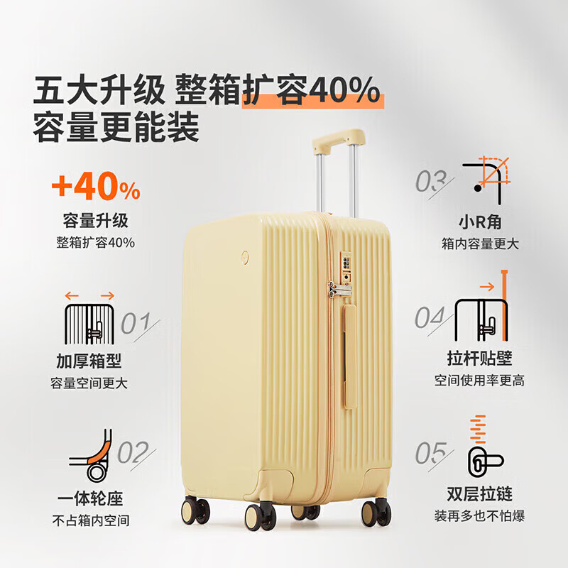 米熙高颜值拉杆箱26英寸行李箱大容量密码箱男轻音轮旅行箱包云雀黄83价格:469.00元!
