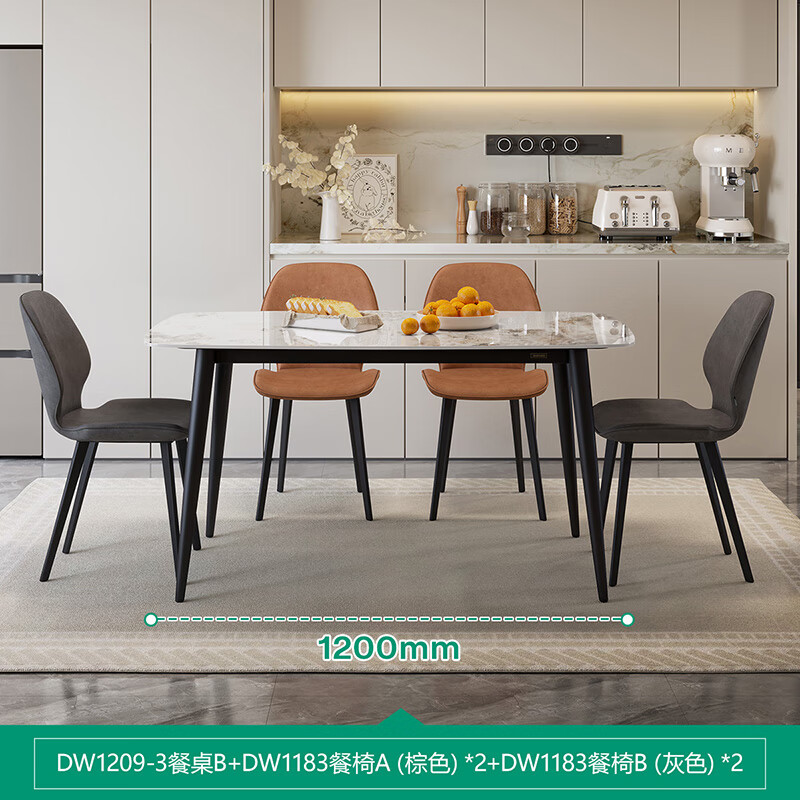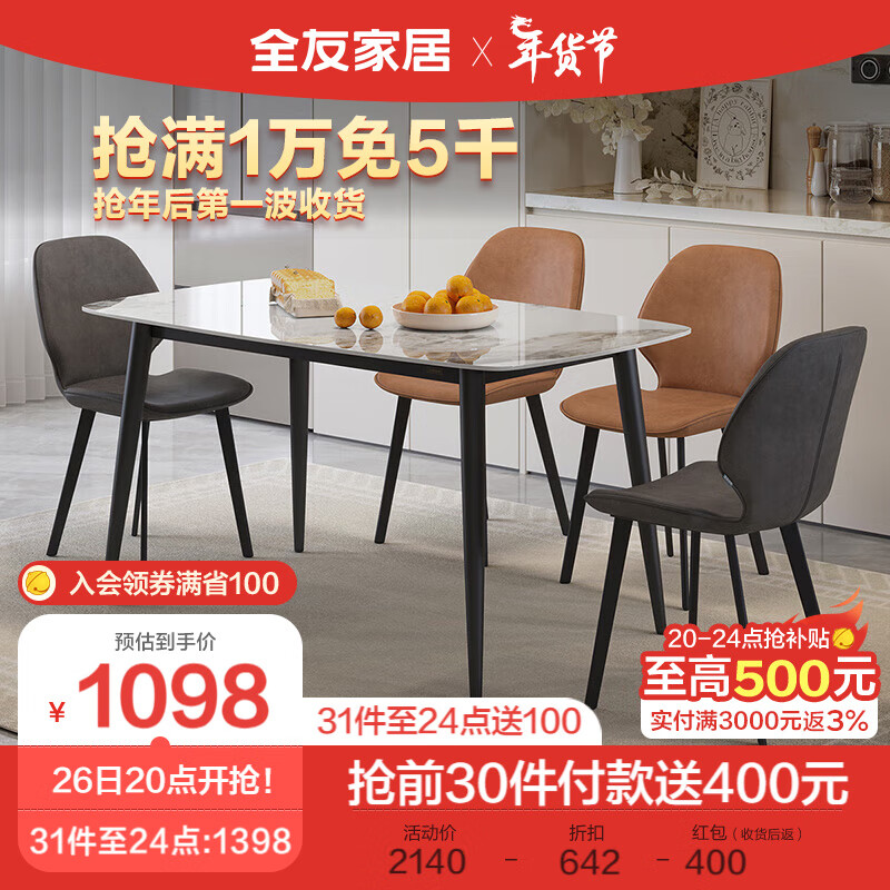 全友家居 现代简约岩板餐桌椅组合家用小户型饭桌金属脚小桌子DW1209价格:2140.00元!