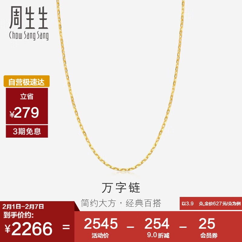 周生生新年礼物黄金万字素链百搭锁骨链女款09251N计价40厘米3.9克价格:2545.00元!