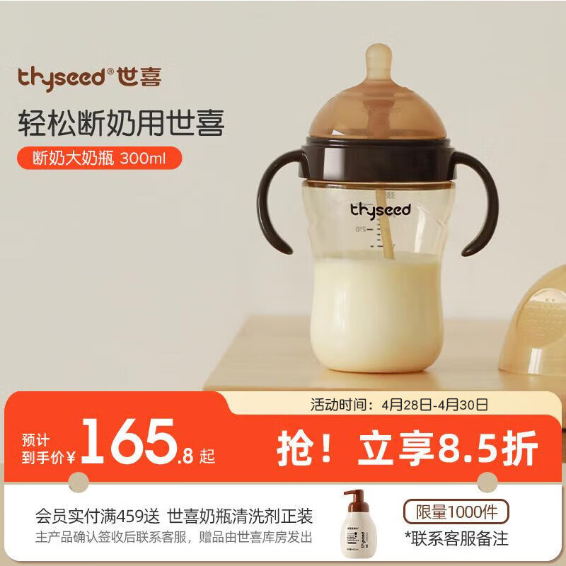 世喜奶瓶6个月以上婴儿PPSU宝宝仿母乳奶嘴300ml带手柄重力球价格:195.00元!