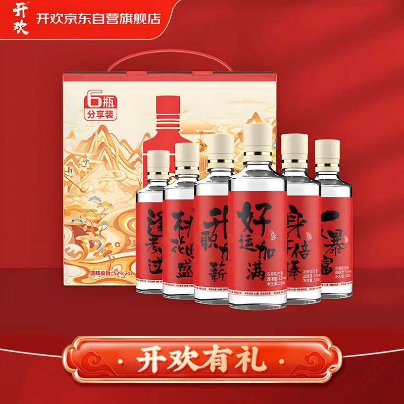 开欢经典系列 浓香型白酒 52度 100ml*6瓶 礼盒装价格:208.00元!