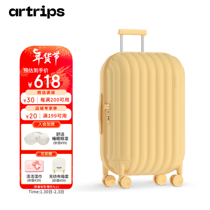 artrips行李箱拉杆箱男女万向轮旅行箱24英寸防刮面包款磨砂箱子 乳酪黄价格:778.00元!