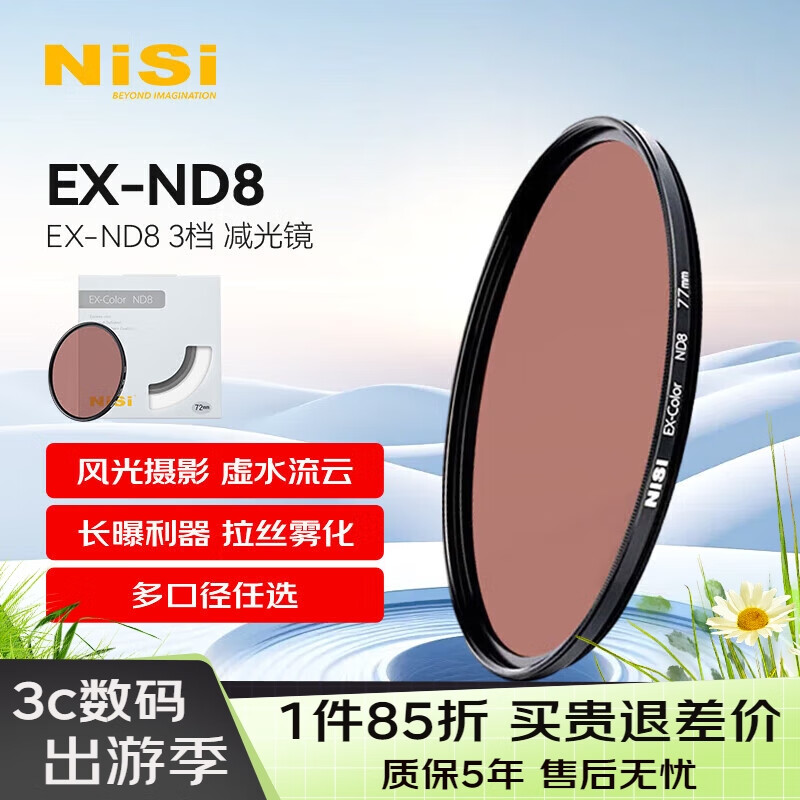 耐司(NiSi)减光镜ND8(0.9) 77mm 3档 中灰密度镜nd镜滤镜微单单反相机滤光镜 适用于佳能尼康索尼价格:135.00元!
