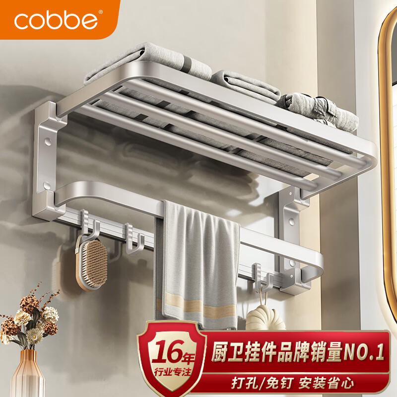 卡贝(cobbe)浴室毛巾架壁挂式免打孔卫生间太空铝挂件浴巾架厕所置物架洗手间价格:118.00元!