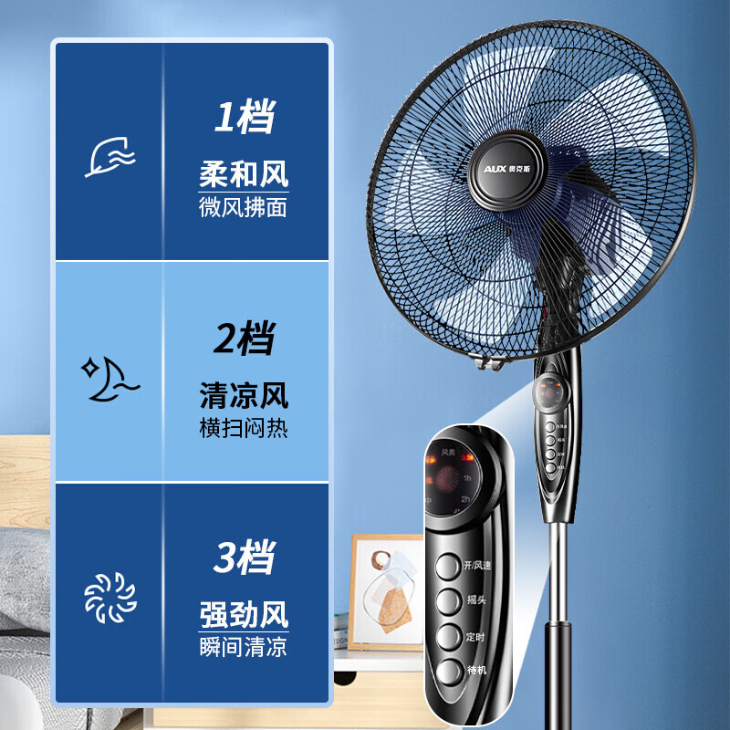 奥克斯(AUX)遥控落地扇/家用电风扇/大风量风扇/电风扇FS1608RC(2.7米线)价格:139.90元!