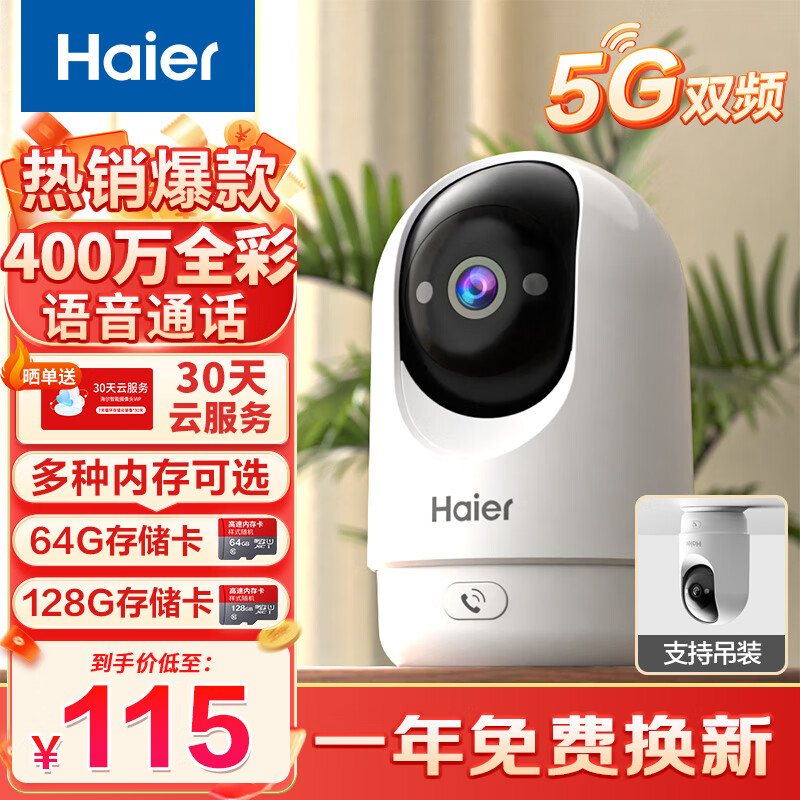 海尔(Haier)无线家用摄像头手机远程监控器360度无死角带夜视全景语音自动旋转可对话室内外云台价格:139.00元!